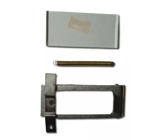 Conjunto de 1 Puerta corrediza+ 1 vidrio visor + 1 resorte de puerta para del calefactor orbis/volcan .