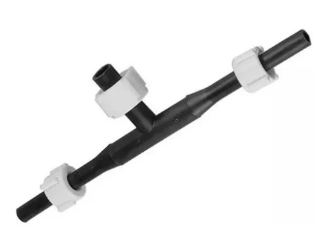 RAMAL TEE PLASTICO RECTO CON TUERCAS PARA LAVATORIO Ø 3/8 X 1/2 X 3/8 X 21 CM